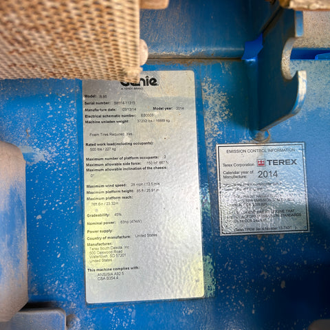 2014 GENIE S85 TELESCOPIC STRAIGHT BOOM LIFT AERIAL LIFT WITH JIB ARM 85' REACH DIESEL 4WD 2506 HOURS STOCK # BF9499539-WIB