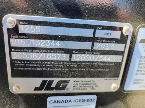 BRAND NEW IN STOCK READY TO SHIP 2024 JLG 1255 12000 LB DIESEL TELESCOPIC FORKLIFT TELEHANDLER FOAM FILLED TIRES 130HP TURBO CUMMINS ENCLOSED CAB WITH HEAT AND AC 4WD BRAND NEW STOCK # BF91929179-VAOH