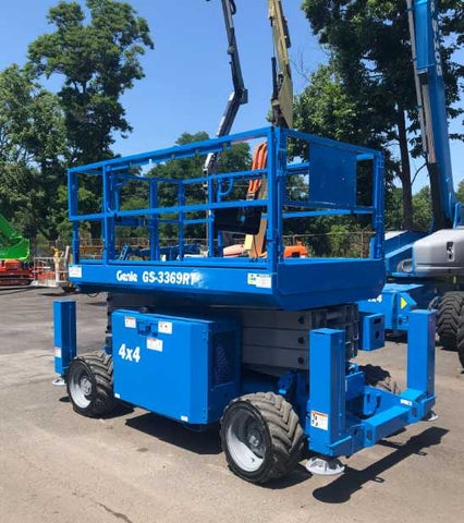 2013 GENIE GS3369RT DIESEL ROUGH TERRAIN SCISSOR LIFT 33′ REACH 4WD WITH OUTRIGGERS 1420 HOURS STOCK # BF9295159-NLEQ